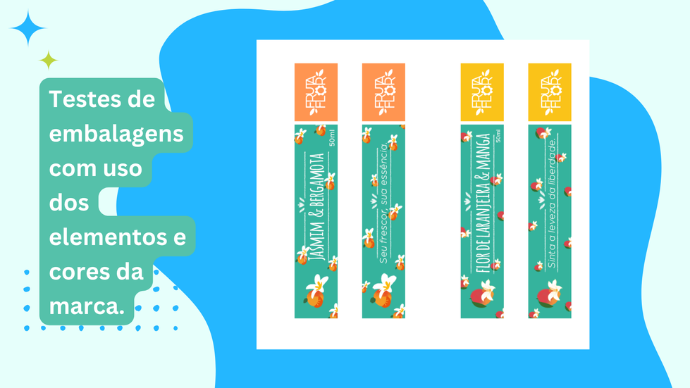 Processo de criação de design de embalagem para a marca fictícia, Fruta Flor. Os ícones também foram ilustrados por mim.